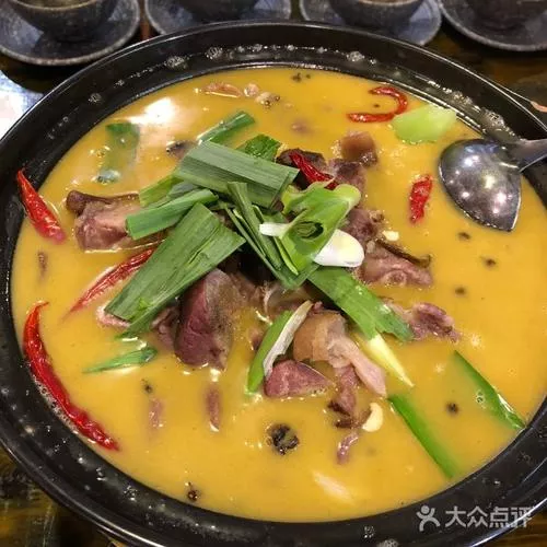 臘排骨火鍋是納西名菜三疊水的第三疊熱烈疊中的一道主菜,也是麗江傳統(tǒng)名菜,屬于滇菜,是納西人招待最尊貴客人的菜肴。臘排骨火鍋使用秘制的臘排骨,經(jīng)過(guò)酒、白糖、香料等配料腌制,清燉至軟爛但不能離骨,溢出香噴噴的排骨味。臘排骨聞起來(lái)有股淡淡的肉香,嘗起來(lái)介于臘與不臘之間,保留原有排骨的柔軟又兼有臘肉香味,入口略有鹽味而又不咸,是麗江獨(dú)樹(shù)一幟的研制葷菜。臘排骨火鍋吃法是以當(dāng)?shù)靥赜械恼核{(diào)味,鮮美濃郁,肉香汁鮮,卻愈煮愈香,再佐以當(dāng)?shù)孛拙疲渥涛恫谎远?。臘排骨火鍋原來(lái)只能在宴客或是過(guò)年的時(shí)候吃,是一道經(jīng)典宴席名菜,