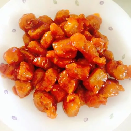 櫻桃肉 櫻桃肉是一道江蘇省蘇州市的傳統(tǒng)名菜之一,屬于蘇菜系之蘇幫菜,清乾隆年間傳入宮中,被記錄進清《御茶膳房檔》,其特點色澤櫻紅,光亮悅目,酥爛肥美。其顏色紅亮,形態(tài)圓小,皮軟味甜咸,富油脂,是上佳的下酒菜和下飯菜。蘇州櫻桃肉的制作方式,是把整塊方肉剞花刀,燒制配以紅曲粉等調色,成形后像櫻桃,色澤像櫻桃般鮮艷透紅、亮麗誘人?!驹敿殹?br />中文名:櫻桃肉分類:蘇菜,川菜 東北菜口味:鮮香、甜,酸主要食材:五花肉,里脊肉調料:五香料、鹽等輔料:姜、蔥等 贊 (0) 39 151 生成海報 母油船鴨 下一篇 2008-08-08 蘇州鹵鴨 上一篇 2008-08-08 相關推薦